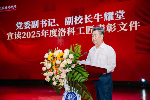 典礼在激昂的国歌声中拉开帷幕。副校长牛耀堂现场宣读对24名“洛科工匠”及10名“洛科工匠”提名奖获得者进行表彰的决定。