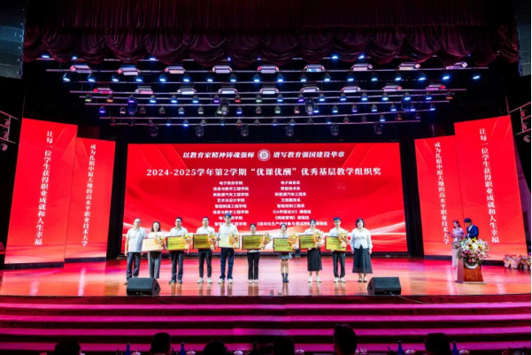 发展作出积极贡献的优秀教学组织和优秀教师进行表彰。副校长韩全力宣读了关于表彰“优课优酬”优秀基层教学组织、“优导优酬”优秀督导,OBE课程质量评价“五星”“四星”课程,以及“优学优酬”优秀育人导师及班主任的决定,旨在表彰他们在提升教学质量、推动教育创新方面的突出贡献,既是对基层教学组织和个人辛勤付出与卓越成就的肯定,也是对全校教职工的激励与鼓舞,有助于营造积极进取、追求卓越的教学氛围。