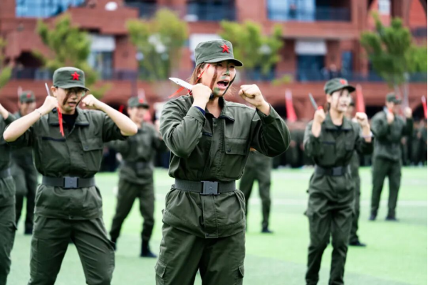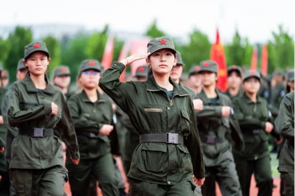 军训汇演既是军训成果的集中检阅,更是对新生精神风貌与团队协作能力的综合考验。在分列式环节中,各方阵步伐铿锵有力、口号响彻云霄,以昂扬的斗志和整齐划一的队列,完美展现了历经军训洗礼后的飒爽英姿与青春力量。