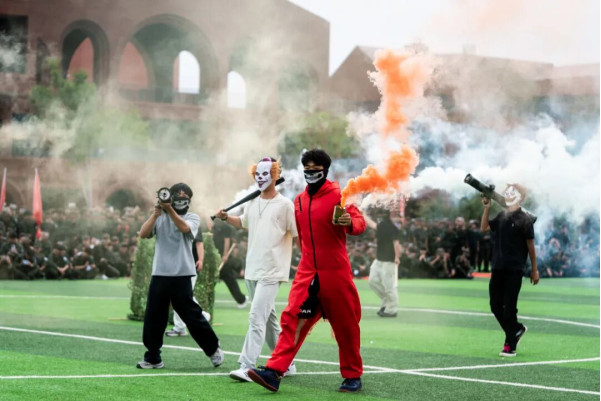 在万千师生的注目礼中,五星红旗冉冉升起,迎风招展。随后,军旗、校旗与各书院院旗庄严入场,护旗方阵步伐铿锵、整齐划一,尽显青春激昂、信念如磐。洛科学子以青春之名,共颂英皇娱乐场
