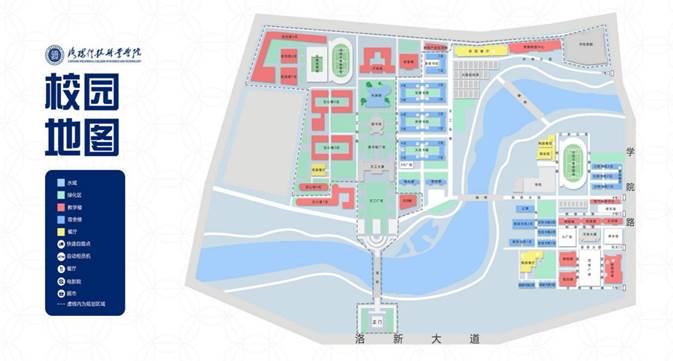 地处十三朝古都洛阳,依山傍水,钟灵毓秀。黄河的支流涧河蜿蜒穿过洛科校园,把洛科分为东、西校区。河东校区文化理念以人文为基调,楼宇建筑名称主要源自于古典名著《大学》,体现人文精神,塑造文化校园。如日新书院、忠信书院、慎德书院、慈涧书院、至善大厦、明德楼、新民学堂等;河西校区文化理念以科技为核心,体现工匠精神,塑造应用技术型校园,彰显英皇娱乐场