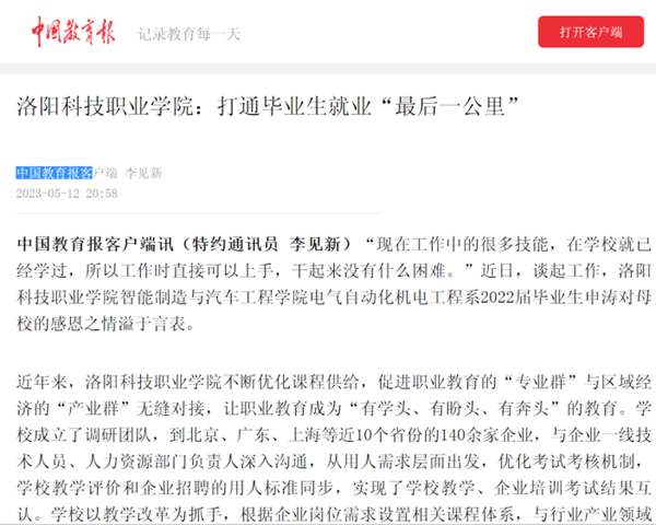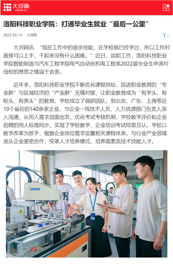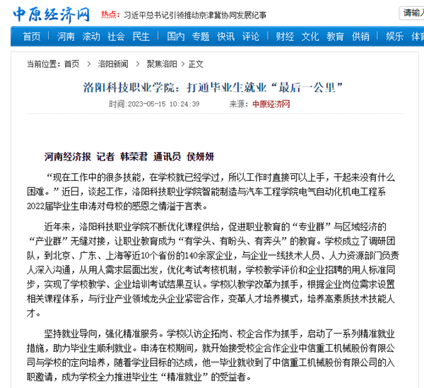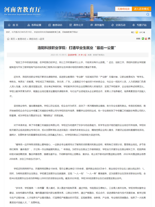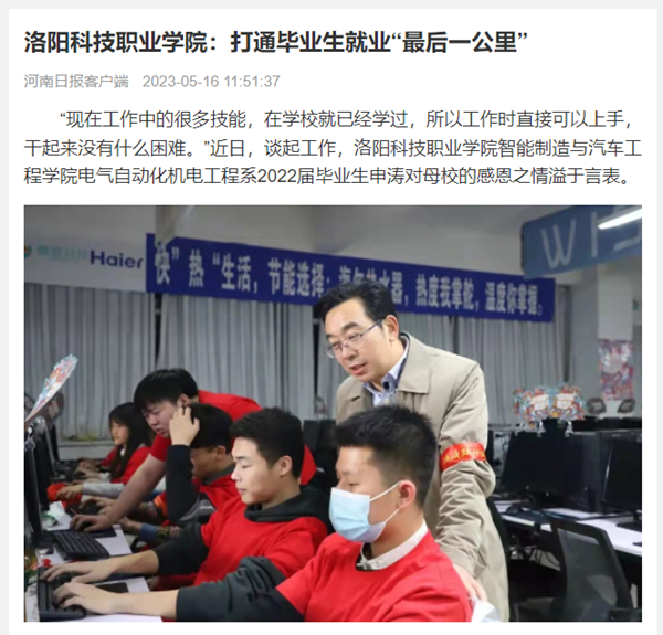 党的二十大报告指出:“就业是最基本的民生。强化就业优先政策,健全就业促进机制,促进高质量充分就业。”洛阳科技职业英皇娱乐场