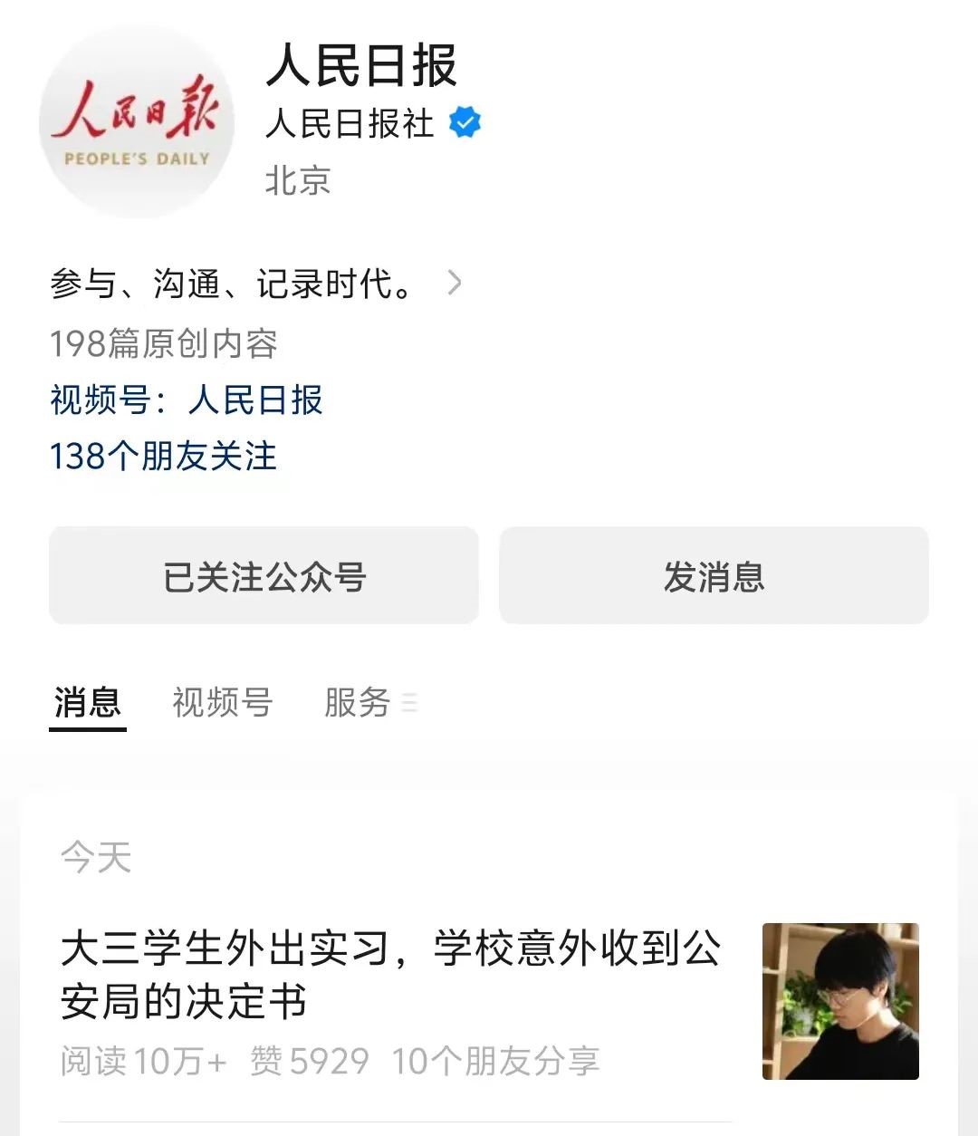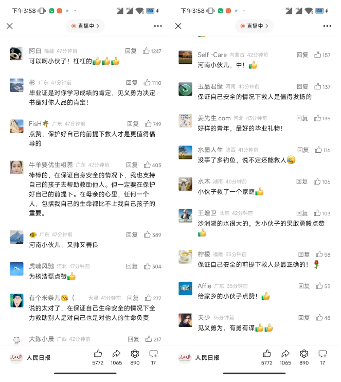 学生杨浩磊因勇救落水女孩登上了人民日报官微头条。