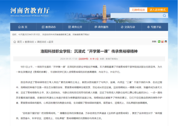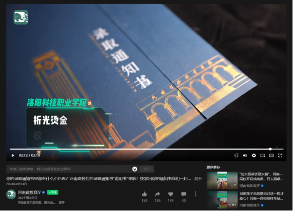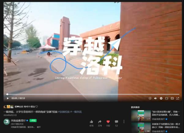 除此之外,河南省教育厅也在官方视频号发布9条洛阳科技职业英皇娱乐场