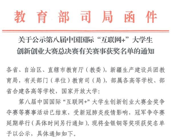 第八届中国国际“互联网+”大学生创新创业大赛高教主赛道获奖名单
