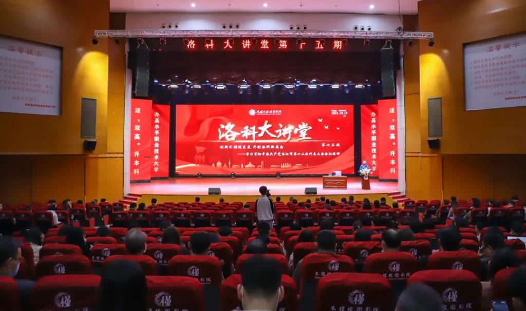 伴随着《爱我中华》集体大合唱的嘹亮歌声,以“创新引领促发展,开创洛科新局面”为主题的第十五期洛科大讲堂拉开帷幕,本期大讲堂由校党委书记刘茂钦主讲,校党委副书记、副校长牛耀堂主持,全体教职工现场学习聆听。