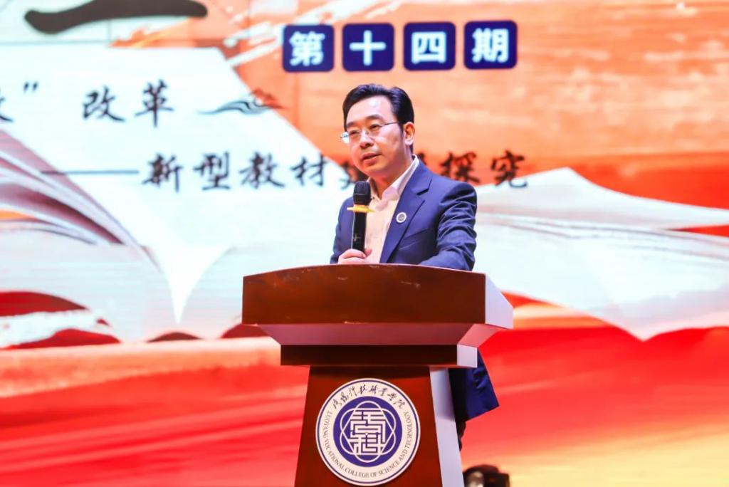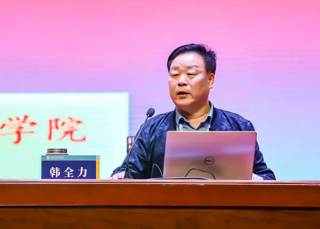 院长韩全立教授主讲。韩教授以《提质培优增值赋能,持续推进“三教”改革——新型教材建设探究》为题,从宏观政策到微观实际操作层面,全面分享了“三教”改革的研究、经验和成果。