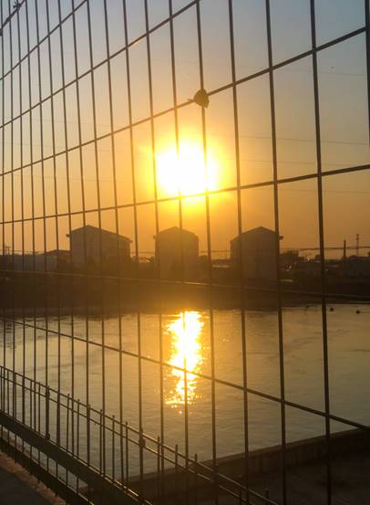 途径南水北调工程时恰逢日落,