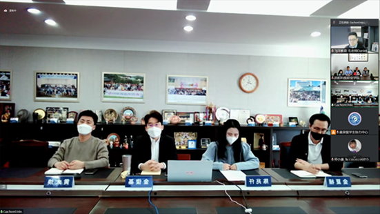 在至善大厦1204室召开了与韩国嘉泉大学(亚洲QS排名351+)的线上合作办学会议,嘉泉大学国际交流处院长金俊基、部长黄太焕、主任金夏植、职业教育英皇娱乐场