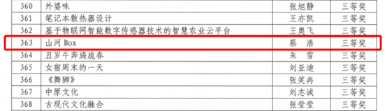 学生崔建厂、张世杰、王志豪及其指导老师冀乃榛、刘锐峰,项目负责人蔡浩所共同完成的项目“山河Box”脱颖而出,斩获“创意设计”赛道三等奖。