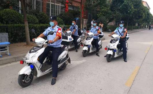 开通绿色通道,为考生提供便利,安全保卫人员热心给考生们送水、送祝福,连聪斐发现有一名女生口罩只带了一半,主动帮助该学生系好口罩带,用纸巾擦去了女生额头和脸颊上的汗水,并给她送上了真诚的祝福,帮助她平复了紧张的心情。