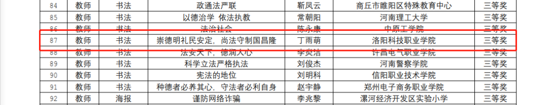 教师在法治宣传教育书法、海报设计作品征集活动中获奖