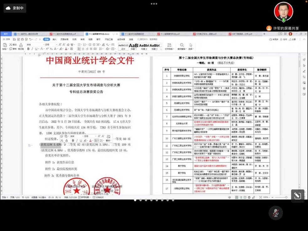 在讲座中,许军主要围绕赛事经验分享及作品解读,向师生介绍了参赛准备流程及调查选题。市场调查与分析大赛作为教育部认可的全国大学生学科竞赛之一,其最大特点就是“门槛低”,各个专业的同学均可参加。虽说它的“门槛低”,但其中也不乏专业性的比较与衡量,是一种个人能力的体现。