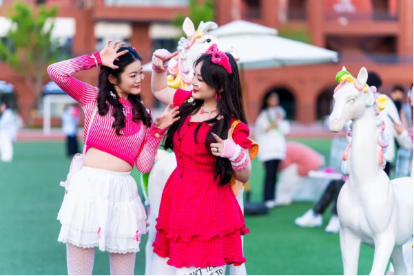 夜幕降临,音乐节的氛围愈发浓烈。现场设置的星空摩天轮、飞马、长颈鹿等沉浸式打卡点,吸引了众多学子驻足拍照,定格美好瞬间。