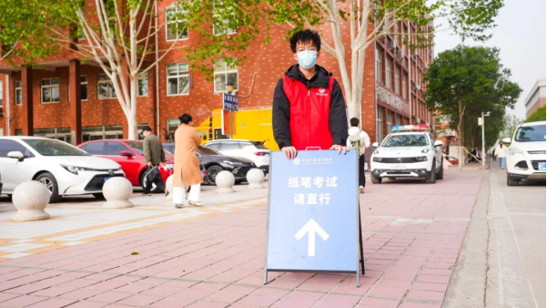 以考生需求为出发点,积极组织志愿者为考生提供贴心服务。志愿者们在校园内设置了多个服务点,为考生提供考场引导服务,帮助考生快速准确地找到自己的考场;解决考生的燃眉之急;此外,志愿者们还积极开展诚信考试宣传,为考生答疑解惑,缓解考生的紧张情绪,营造了温馨、和谐的考试氛围。