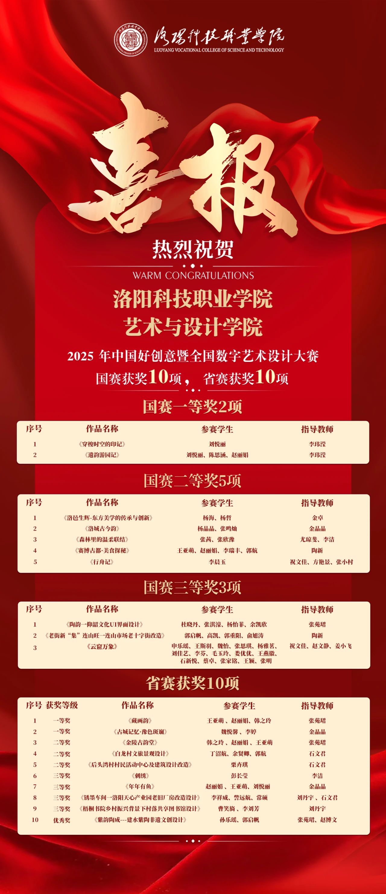 近日,第19届中国好创意暨全国数字艺术设计大赛获奖名单正式公布,洛阳科技职业英皇娱乐场
