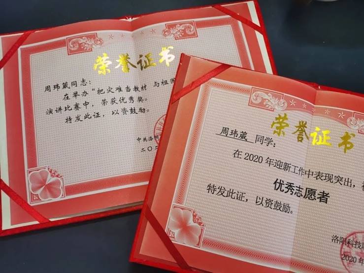积极参加志愿者工作,发展爱好特长的同时,周玮葳也没有忘记学生的本职。“我是学生,学生就要以成绩见真章。到目前为止,我的专业成绩还一直保持在第一。”