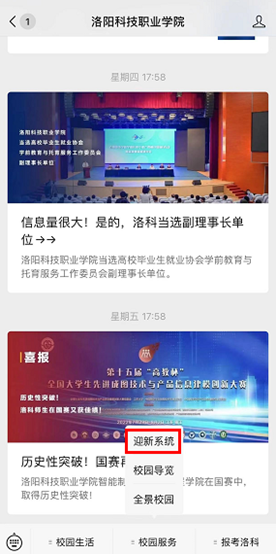 ”;关注后点击“校园服务-迎新系统”进入系统。