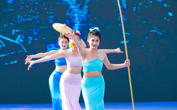 舞转回红袖,歌愁敛翠钿;满堂开照耀,分座俨婵娟。傣族舞蹈《邵多丽》,美丽俊俏的傣族姑娘顶着斗笠、担着竹担、追逐着鲜花的芬芳。