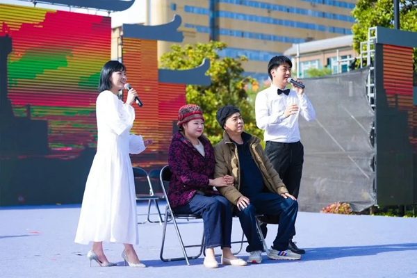 洛科文化艺术协会相声社团带来的《三节拜花巷》,用最新颖的方式讲述故事,引来群众阵阵掌声。