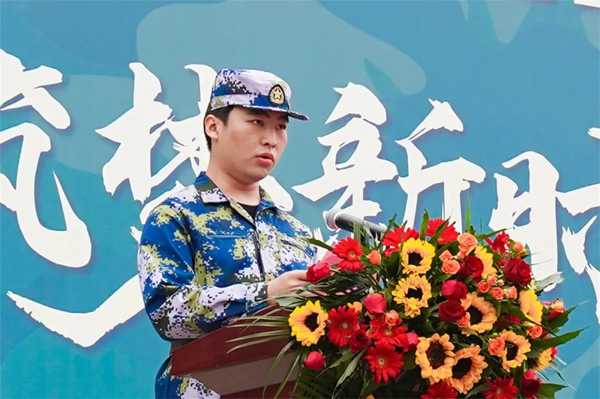 军训教官闫孝代表全体教官在发言中表示,在此次军训中将认真履行教官应尽的职责,以良好的军人形象引导学生、以过硬的军事本领训练队伍,增强同学们的集体主义精神和纪律观念,磨练意志、培养吃苦耐劳精神,出色完成本次训练任务。