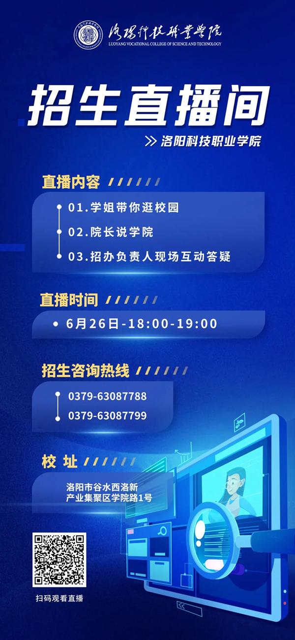 的“隐形实力”,看看未来学习和生活的“家”到底长啥样,6月26日,瑶瑶学姐将带领镜头前的考生和家长,“云参观”洛科校园,提前感受洛科不一般的魅力,帮助考生深度了解洛阳科技职业英皇娱乐场