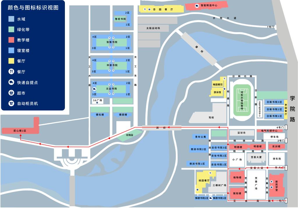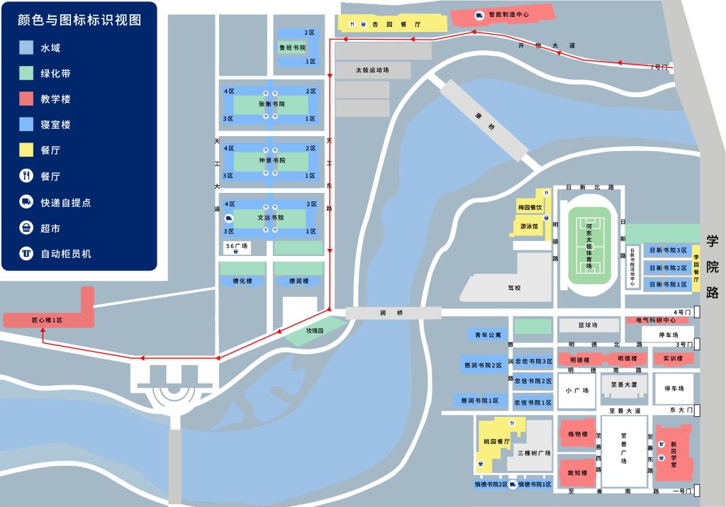 七号门入校,前往匠心楼路线