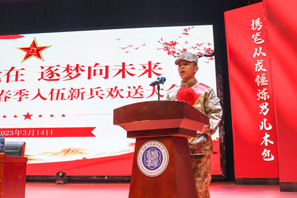 欢送会上,作为入伍学生代表,二次入伍的林中欣表示,洛科学子应当牢记“理实一体,知行合一”的校训,去祖国最需要的地方,与祖国同频共振,为国防事业的建设贡献自己的力量。
