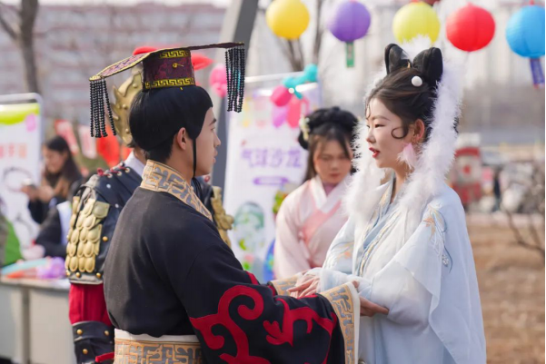 本次活动不仅沿袭传统文化及其形式,又注入符合年轻人的元素,令传统民间技艺焕发了新的生机。金鼓齐鸣,金狮起舞。现场变装,打造“沉浸式”汉服体验,学生们穿上汉服、选择身份进入到剧本情节中,通过NPC(非玩家角色)演绎、互动,创新剧本新玩法。