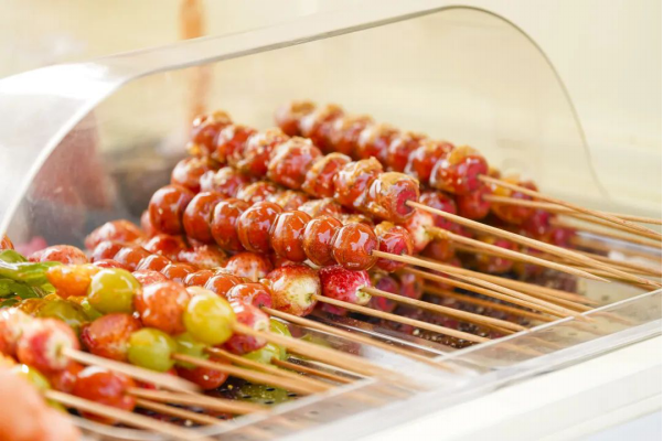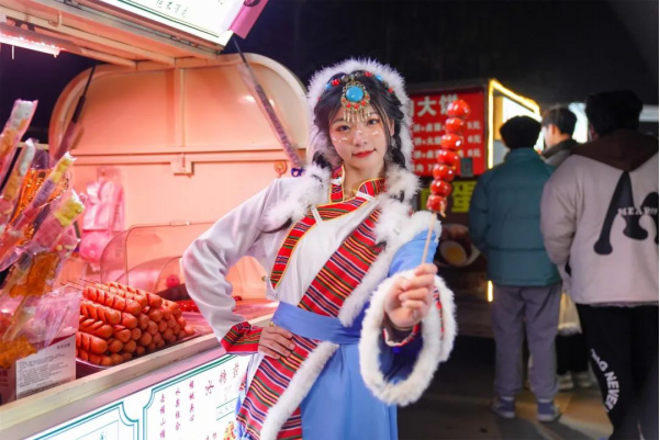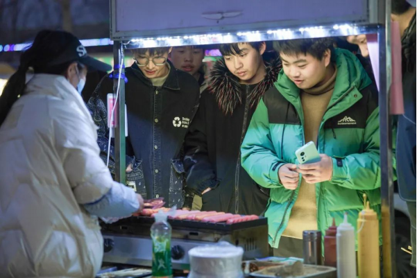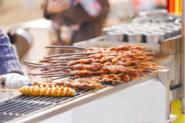 芋泥奶酪球、东北烤冷面、蒙古大肉串、五香烤面筋、卤制鸭货、黄金炸串……各式香气扑鼻的民间小吃琳琅满目,令师生们无需踏出校门,便能尽享美食盛宴。