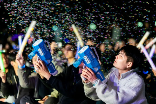 夜幕降临,活动氛围愈发浓烈。目不暇接的节目和炫酷的灯光,让现场的同学们不禁齐举双手,追随音乐的节拍尽情舞动。五彩斑斓的荧光棒与舞台灯光交相辉映,在精彩绝伦的表演中,现场活动进入高潮。