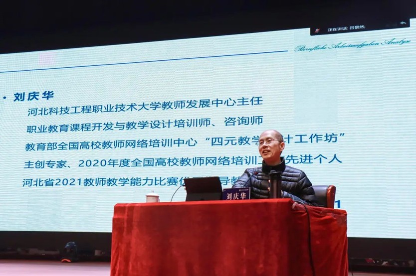 河北科技工程职业技术大学艺术与传媒系主任、市社会科学优秀青年专家杨志红教授带来以“专业人才培养目标确定与达成度评价”为主题的讲座。她详细讲解了基于职业能力发展规律进行专业课程体系开发的要点,提纲挈领让教师以培养综合职业能力为目标,在课程设置上要基于发展性任务,课程排序需要参考职业发展阶段,才能为每一位学生的职业发展提供实践框架。