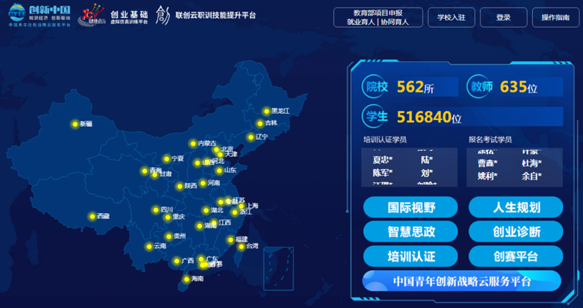 为落实党中央、国务院“稳就业”“保就业”决策部署,深化产教融合、校企合作,推动人才培养与就业有机联动、人才供需有效对接,“创新中国-中国青年创新战略云服务平台”及赛云九洲集团策应国家健康中国战略和人才发展战略需求,形成数字教育、创业指导、人才培训、学历提升、技能强化、就业服务的“六育工程”体系,通过17年来创业、就业、思政教育情怀的坚守,旗下的“创业之旅”系列产品已覆盖全国所有省份并合作了660余家高校和政府用户。完成20多所创业大学、创业基地、创客空间的建设,形成覆盖全国的O2O教育支撑体系,构建了集“创新教育、创业教育、职业规划、专创融合、产创融合、赛创融合”为一体的育人服务生态链。