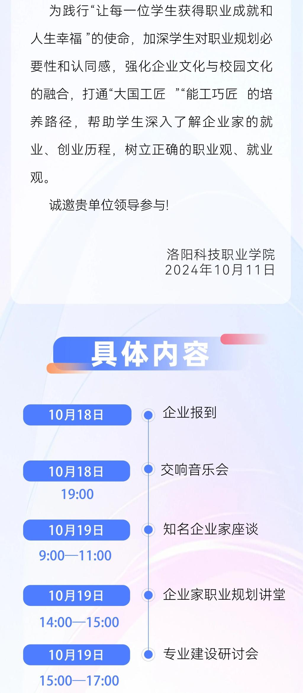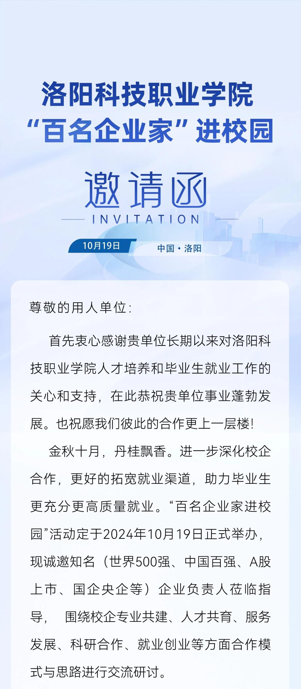 洛阳科技职业英皇娱乐场 “百名企业家”进校园邀请函(内附详细议程)