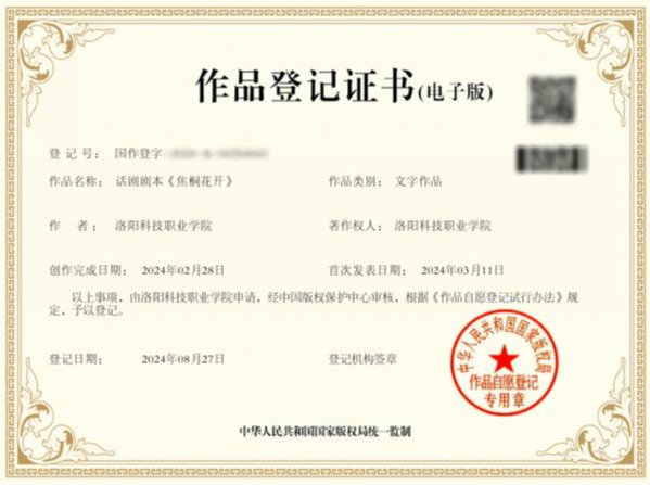 洛阳科技职业英皇娱乐场 的话剧剧本《焦桐花开》