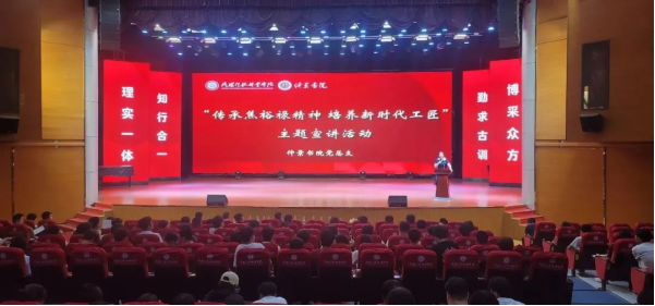 事业的高质量发展。近日,仲景书院党总支在新民学堂举行了大型宣讲活动,仲景书院党总支书记周文文主持并以“传承焦裕禄精神,培养新时代工匠”为主题讲专题党课,此次报告会仲景书院党总支全体党员、发展对象、积极分子、学生代表参加。