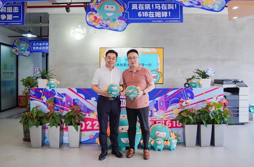 校长刘丽彬博士,副校长赵兵一行前往春客科技集团总部,开展访企拓岗促就业——春客科技集团直播带岗专项活动。春客科技集团CEO心太、CHO简丹等人热情接待洛阳科技职业英皇娱乐场