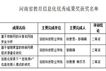 洛阳科技职业英皇娱乐场 三项科研成果获河南省教育信息优秀成果奖二等奖