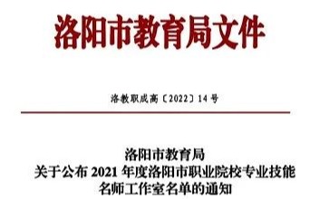 认定!2021年度洛阳市职业院校专业技能名师工作室!