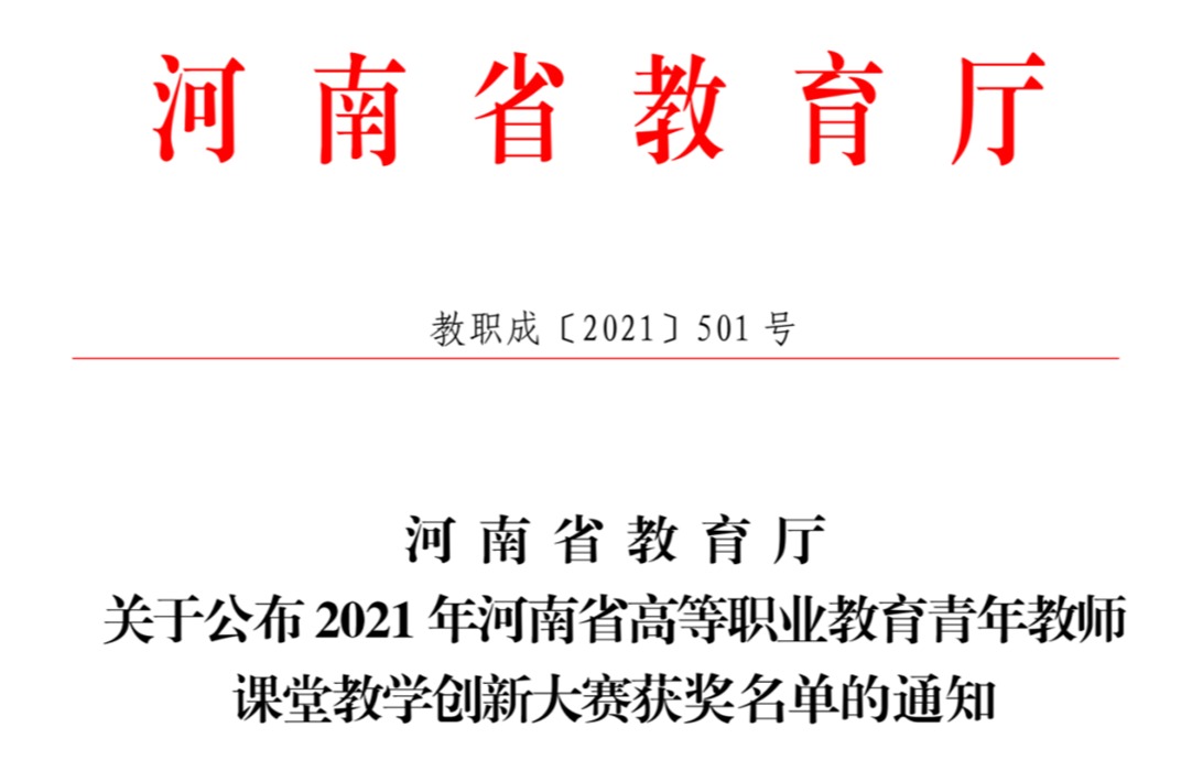 洛阳科技职业英皇娱乐场 在2021年河南省高等职业教育青年教师课堂教学创新大赛中喜获佳绩