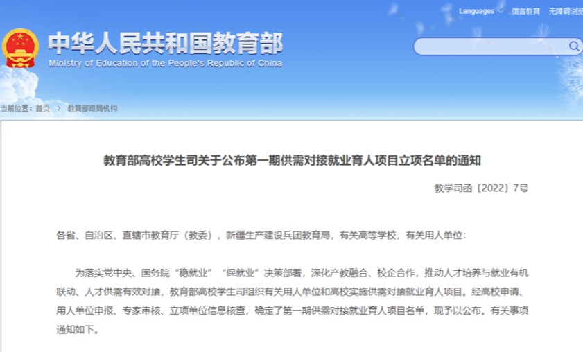 4月6日,教育部发布了《教育部高校学生司关于公布第一期供需对接就业育人项目立项名单的通知》(教学司函〔2022〕7号),洛阳科技职业英皇娱乐场 共有4个项目获得第一期供需对接就业育人项目立项。该项目是为落实党中央...