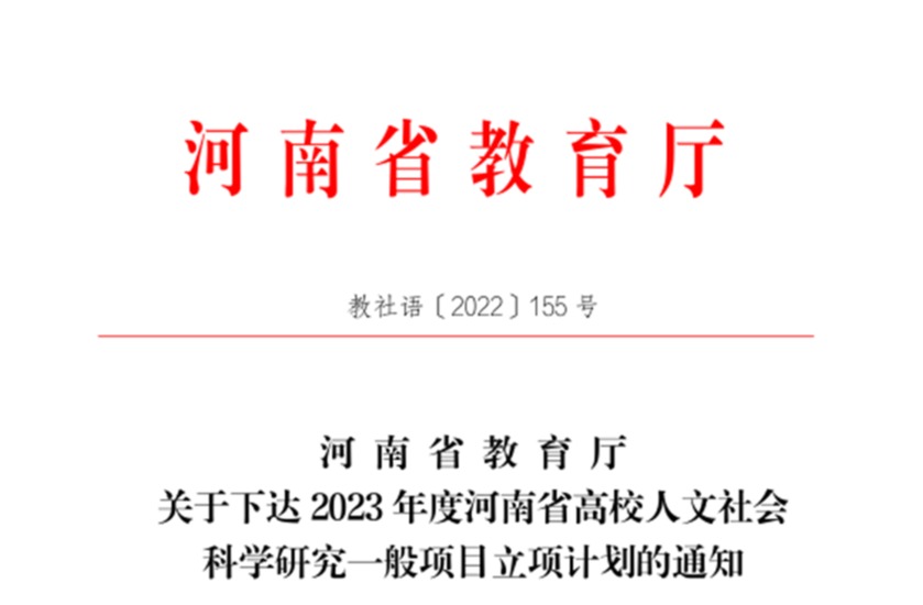 近日,根据《河南省教育厅办公室关于下达2023年度河南省高校人文社会科学研究一般项目立项计划的通知》(教办社语〔2022〕155号)文件,洛阳科技职业英皇娱乐场 五项课题获得立项,创英皇娱乐场 此类课题立项新高。据悉,河南省...