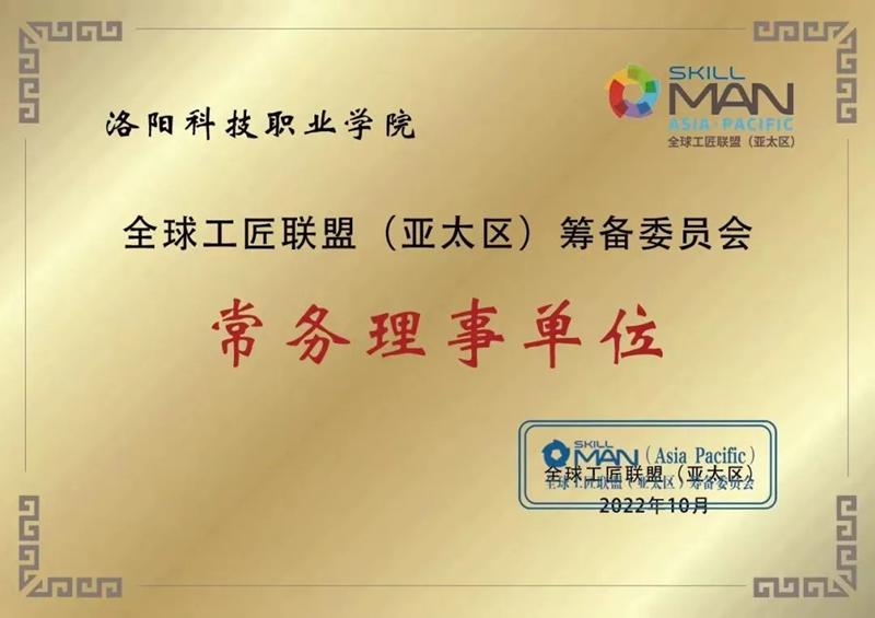 洛阳科技职业英皇娱乐场 当选全球工匠联盟(亚太区)筹备委员会常务理事单位