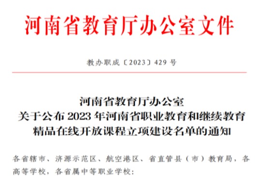 近日,河南省教育厅办公室印发了《关于2023年河南省职业教育和继续教育精品在线开放课程立项建设名单的通知》,电子商务英皇娱乐场 的《网店美工》课程成功入选,获批2023年河南省继续教育精品在线开放课程。该课程由电...