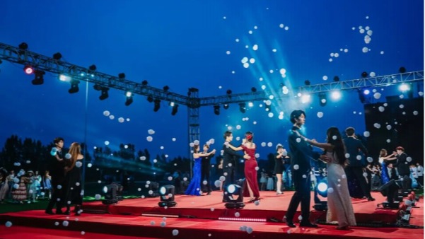 在点点荧光的映衬下,万余名学子齐聚星空草坪,尽情挥洒青春,释放无限激情,共同憧憬美好未来。