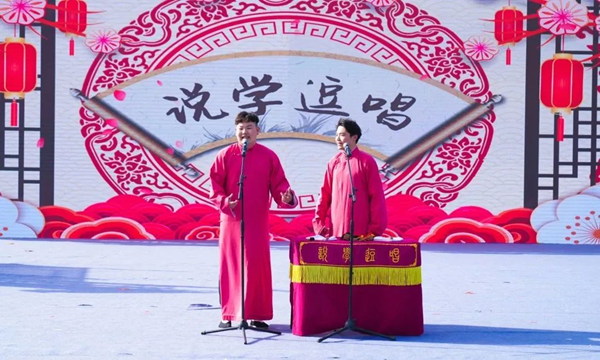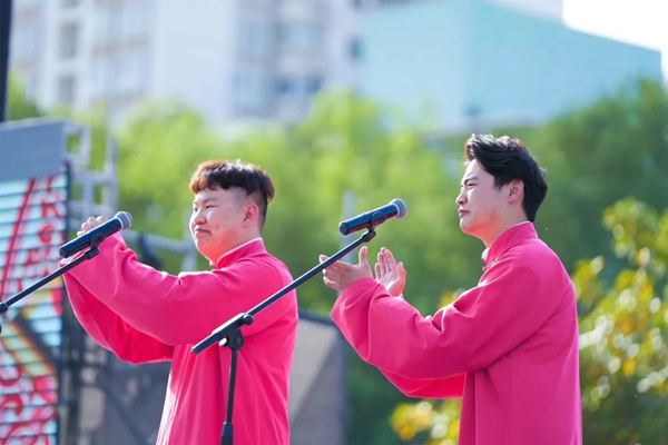 洛科文化艺术协会相声社团带来的《三节拜花巷》,用最新颖的方式讲述故事,引来群众阵阵掌声。