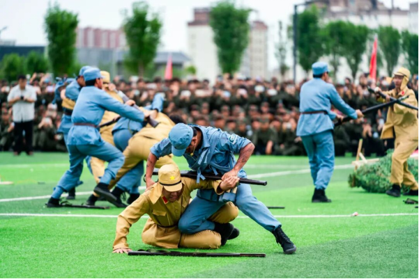 震撼人心的抗日主题情景剧,深情再现了中华民族在抗日战争中英勇不屈、共御外侮的历史片段。表演以逼真的场景和饱满的叙事,刻画了抗战时期中国人民同仇敌忾、不畏强暴的斗争精神,生动表现出英雄人物在烽火岁月中的坚定信念与牺牲精神,尤其一幕雨中冲锋、齐心协力的场景,令人动容。整场演出不仅展现了历史的沉重与峥嵘,更传递出铭记历史、珍爱和平的深刻主题,激发了全体师生的爱国情怀。