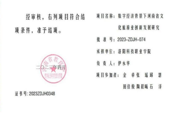 团队依托洛阳都市圈和现代化强市建设专业群,构建了“艺-工-商”协同育人模式,在专业设置上与地方文化、文旅产业发展相适应,并贴近区域产业发展需求,为区域产业培养专业能力对口的复合型人才,该人才培养模式荣获河南省教学成果奖二等奖。
