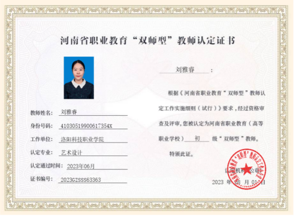 同时2023年艺术设计教师团队指导学生参加“河南省高等职业教育技能大赛”荣获省级一等奖2项、省级二等奖2项、省级三等奖1项。