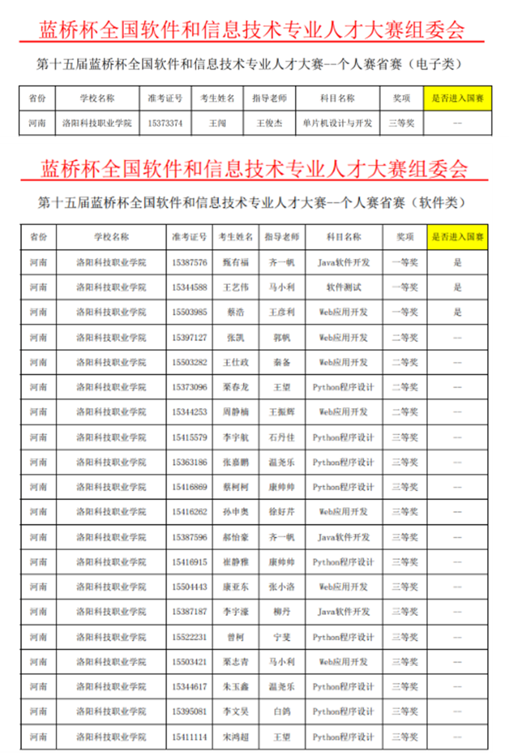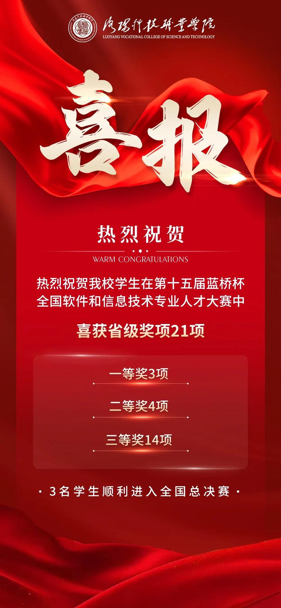 获奖21项!洛阳科技职业英皇娱乐场 在第十五届“蓝桥杯”大赛再创佳绩!